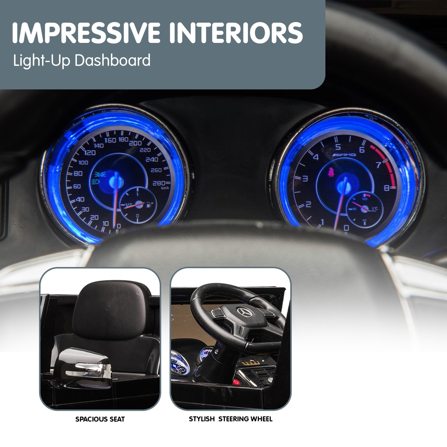Introducing the Mercedes Benz AMG G65 Ride-On Car - the most awesome gift for little drivers. This sporty Mercedes-licensed replica boasts the sporty silhouette and cools detailing of its full-size counterpart.
